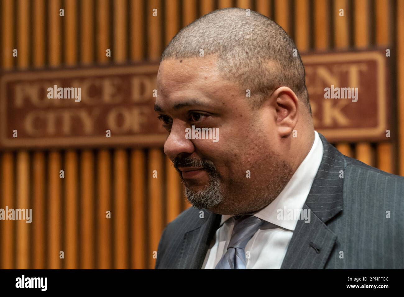 Manhattan DA Alvin Bragg arrives for briefing on arrest of suspects in