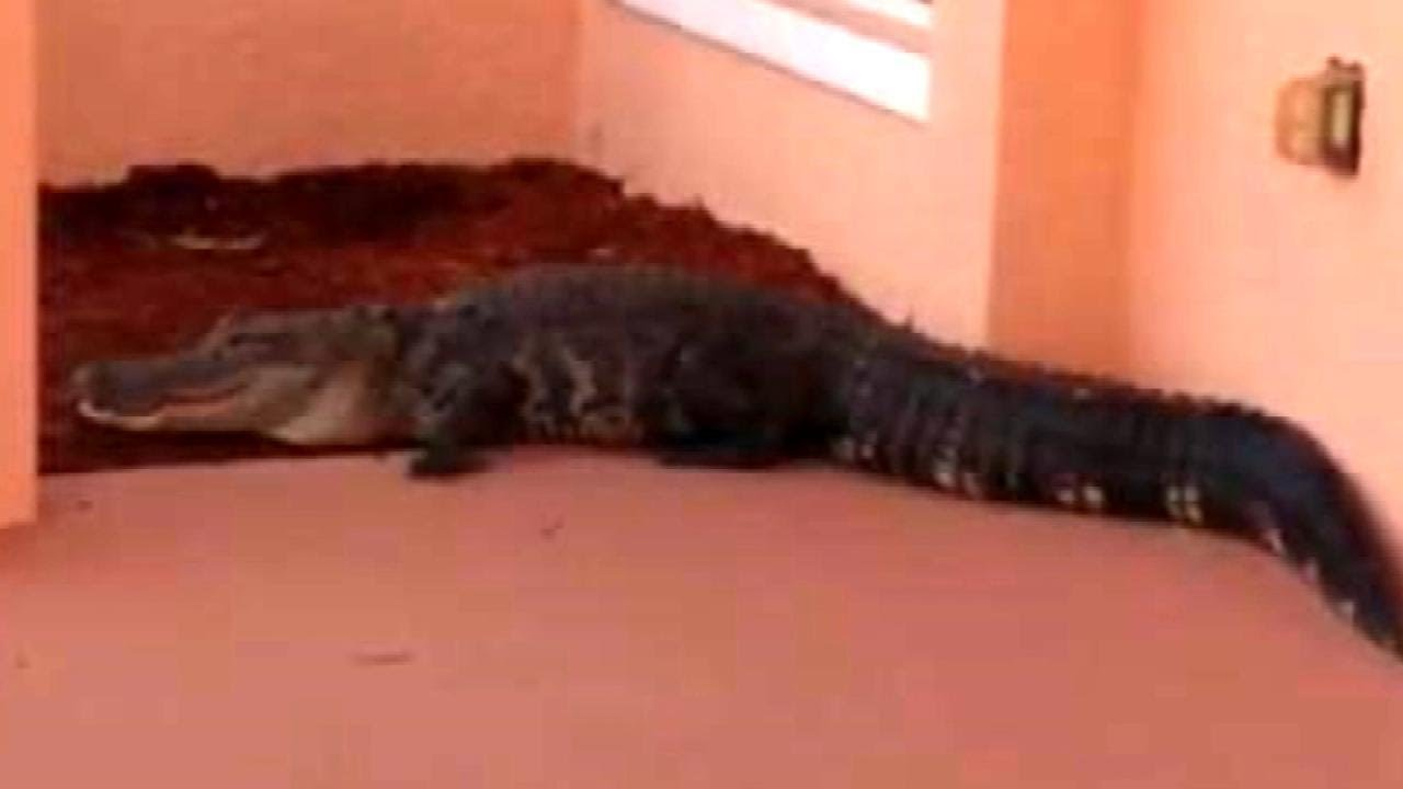 Alligator Gets Police Escort Off Home's Front Porch Officer