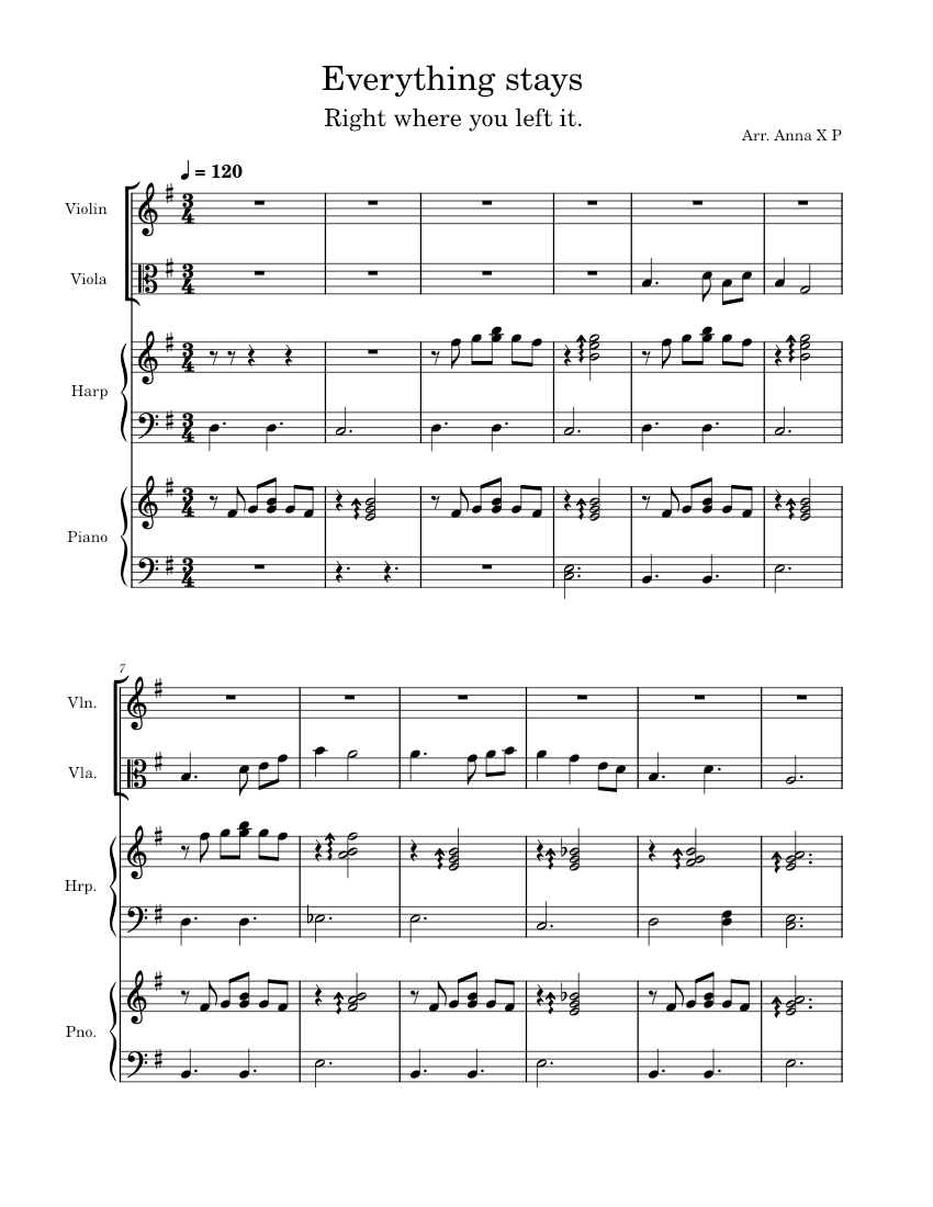 Everything stays Sheet music for Piano, Violin, Viola, Harp (Mixed