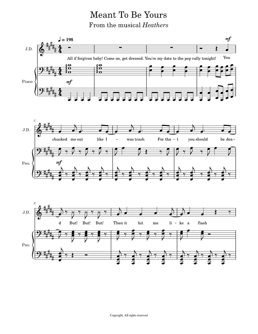 Heathers the musical Meant To Be Yours Sheet music for Piano, Vocals