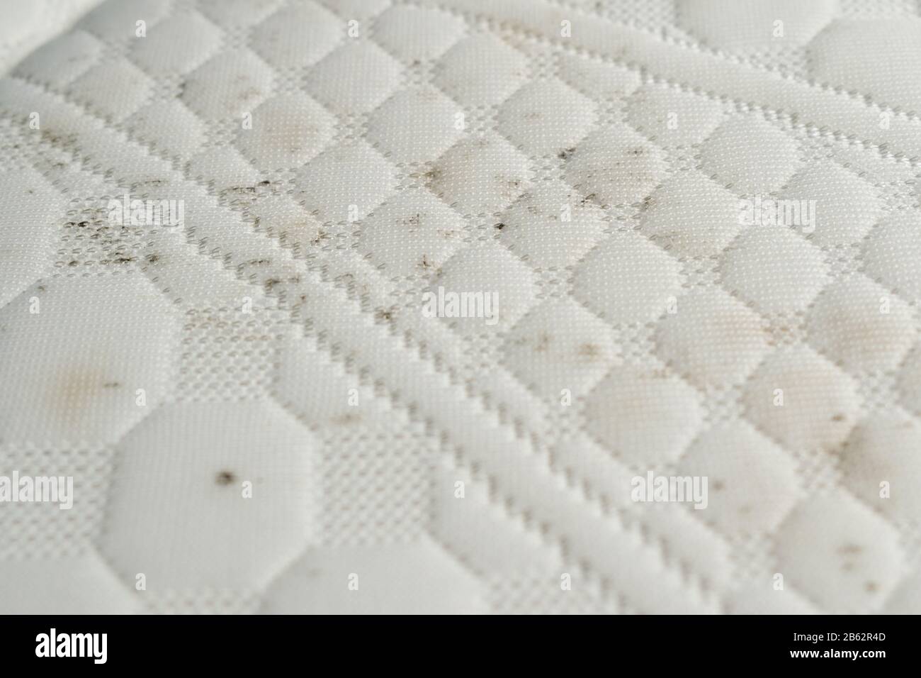 Mold and dirt on a bed. Mattress with spots of mildew spores Stock