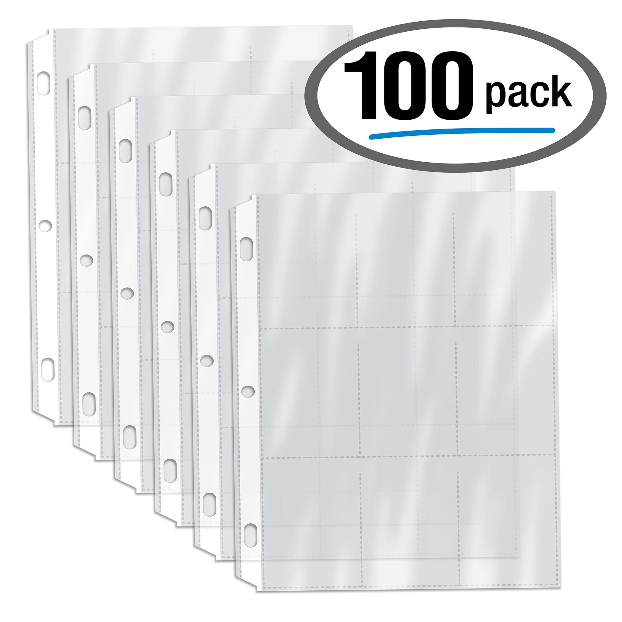 100/Box Clear Heavyweight Trading Card Sleeve Pages, 9 Pockets Per