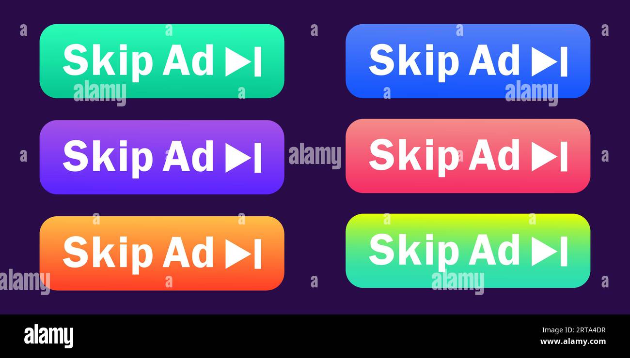 Youtube Skip Ads Icon Vector in Clipart Style. Advertising